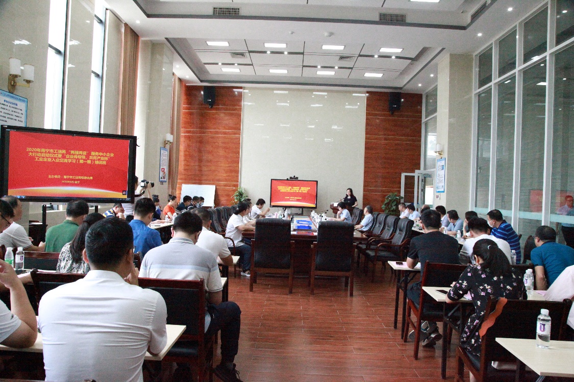? ? ? ? 9月22日上午,南寧市工信局組織來自南寧市的50多家高成長性,具有核心競爭力的小、快、高、特、新工業(yè)中小企業(yè)負(fù)責(zé)人到我公司舉辦2020年“兩強(qiáng)兩促”服務(wù)中小企業(yè)大行動(dòng)啟動(dòng)儀式暨“企業(yè)傳幫帶、共育產(chǎn)業(yè)林”工業(yè)企業(yè)入企業(yè)交流學(xué)習(xí)(第一期)培訓(xùn)班,市工信局局長汪東明出席活動(dòng)并作講話,集團(tuán)人資總監(jiān)吳津生、發(fā)展總監(jiān)周麗川參加此次活動(dòng),周麗川在培訓(xùn)中作《企業(yè)發(fā)展戰(zhàn)略選擇和產(chǎn)業(yè)轉(zhuǎn)型升級(jí)》主題授課。