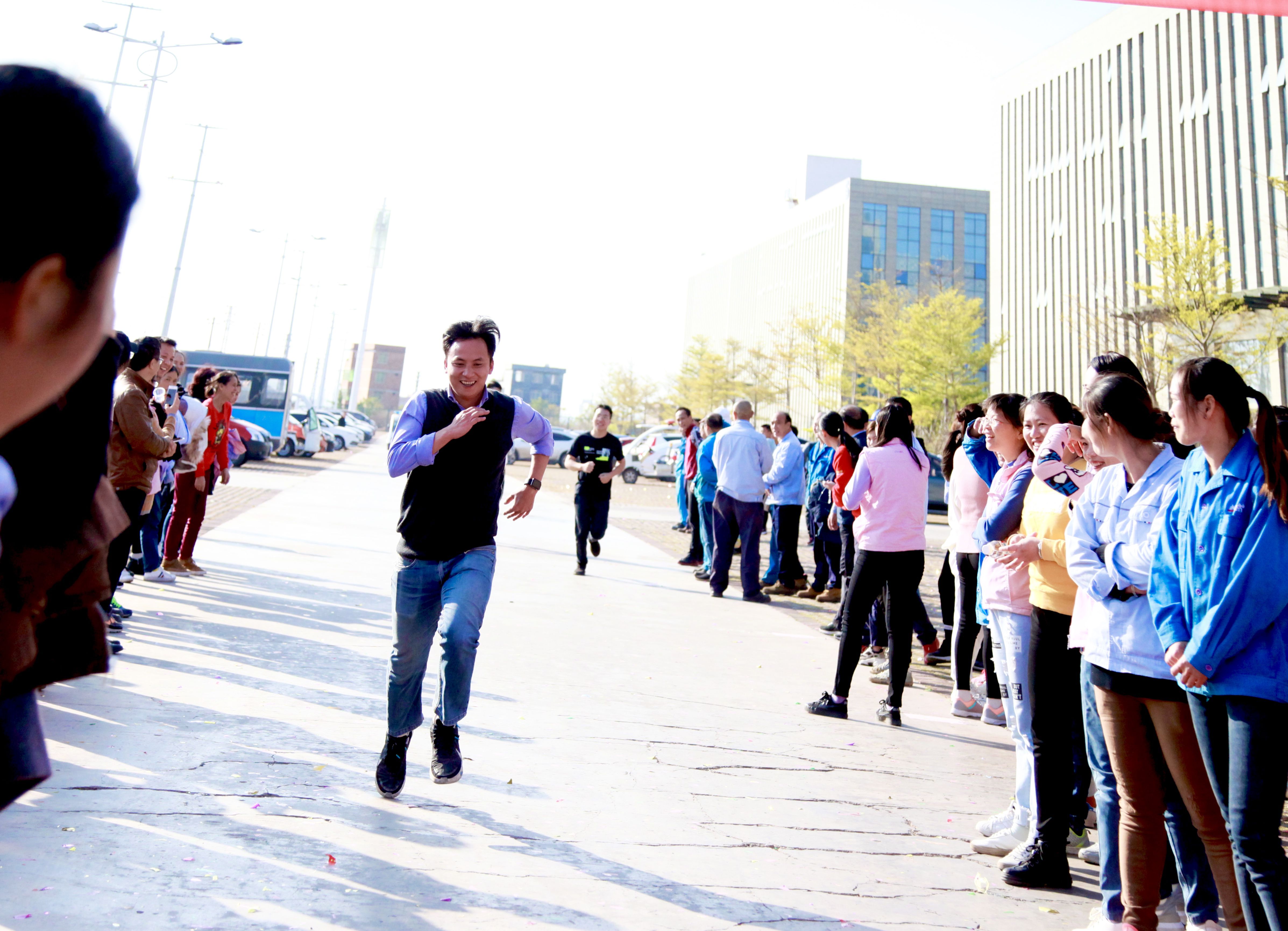 ? ? 全員環(huán)跑結(jié)束后,是激動人心的環(huán)公司2.2公里競賽跑。隨著集團公司綜合辦公室主任李成龍扣響發(fā)令槍,運動員們像箭一樣沖出去,他們個個身手矯健,志在必得,此項比賽引發(fā)了賽場氣氛的高潮,拉拉隊員們熱情洋溢地聚集在跑道周圍,為運動員們吶喊助威,鼓氣加油,經(jīng)過大家的激烈角逐,最后集團中心李勇以6′58″的成績獲得男子組冠軍,汽車組件事業(yè)部梁海源以8′53″獲得女子組冠軍。